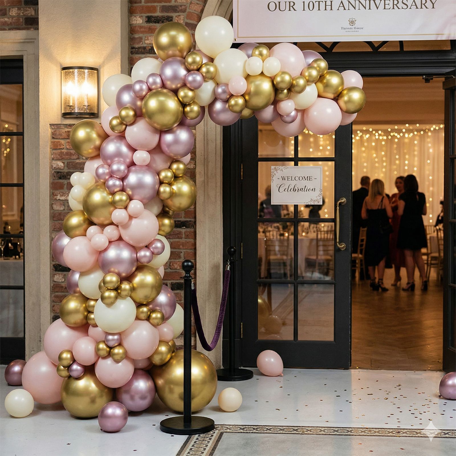 Organic Demi Arch is als het ware een halve ballonnenboog in organische stijl. Dit wil zeggen dat er verschillende formaten ballonnen gebruikt worden en dat er geen vast patroon in zit maar de ballonnen willekeurig door elkaar heen worden gebruikt.