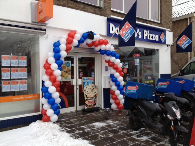 Ballonnenboog voor een dubbele deur geleverd bij Domino’s Pizza in Etten-Leur